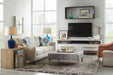 Rustic luxe and sleek, the Urban Elevation Low Entertainment Center has a White Plaster finish on Maple and White Oak Veneers, a cool contrast to the maple base and long bar pulls accented by rustic bolts. There are two drawers and a removable back panel, and media openings in the center and on the left and right sides. A channel speaker opening with two dividers. Accommodates up to an 80-inch TV.