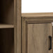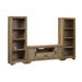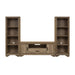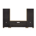 Bring the whole family together with the Sun Valley entertainment center with piers. Crafted with melamine and a rubberwood solid frame, this piece features sandstone finish with a floating shelf design perfect for placing books and ceramics, adjustable shelving behind each door, European hinges, and is accented by dark pewter bar pull hardware. The melamine is scratch resistant, sure to make this piece last in any home. Wire management provisions effortlessly accommodates a DVD player or gaming console of choice.