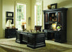 A stylish work-from-home storage solution, the Telluride Lateral File has a hunt country flair and pedigree design details like carved scroll motif accents on the front and a black paint finish with reddish brown rub-through. Crafted of Cherry Veneers, the piece has two file drawers with Pendaflex letter/legal file system on steel ball-bearing slides. Two locks and an anti-tilt mechanism.