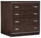 Add stylish work-from-home storage to any space or keep your household organized with the versatile House Blend Lateral File. Featuring a sleek combination of the Dark Roast finish over Quartered Ash Veneers, silver metal trim and polished stainless bar pulls, the file has 3 drawers, and the top two have full extension metal ball-bearing slides. The bottom drawer is a locking file drawer with full extension metal ball bearing slides and a pendaflex filing system.