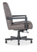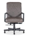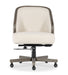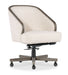 Discover the Paloma Executive Swivel Tilt Chair in the timeless, designed by Hooker Upholstery for contemporary home office spaces. Featuring a barrel back design this chair exudes a classic aesthetic. Upholstered in fabric with easy-care properties, it offers adjustable height, swivel motion, and a sturdy wood trim and base. Ideal for professionals seeking comfort and style in their home workspace setup.