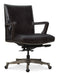 The Phoenix Executive Swivel Tilt Chair in Graphite leather combines industrial modern aesthetics with superior comfort. Its leather-wrapped open-arm design, nailhead trim, and gunmetal base create a striking look for any home office. Durable and sophisticated, this chair offers both form and function with black nickel casters for ease of movement.