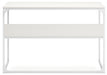 Details Made with engineered wood and melamine laminate, Replicated pickled white oak wood grain, MEGA-TUFF® melamine surfaces are made of easy-clean melamine which is heat-, scratch-, water- and stain-resistant, Tubular metal frame with white powder coated finish, 1 shelf along back side, Assembly required