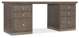 Offered in a clean and unmistakably modern aesthetic that transcends time, the Modern Mood Executive Desk is a statement piece packed with functional features. The Diamond Finish over wire-brushed Quartered Oak Veneers with crystal-like alabaster and pewter hues delivers a soft sophistication, while the metal banding and edging on the base and round metal knobs wrapped in leather offer a mixed-media eclecticism. Features include two locking file drawers with Pendaflex letter/legal filing system, 4 utility drawers, two top left drawers with removable dividers and a top right drawer with removable mouse pad and pencil tray that can be used in either side top drawer. There are locks on the inside of the kneehole area and levelers.