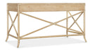 With the sublime vibe of an island oasis, the Retreat Writing Desk is crafted of Oak and Maple Veneers in a Bamboo motif and accented by rope. X-design stretchers on the back and sides distinguish the piece, along with the sand-colored finish, transparent by design to showcase the unique patterns of the wood veneer. Featuring three drawers, the left and right drawers have two removable dividers. One pencil tray and one writing slide may be used on either side, and the center drawer has a drop-front for keyboard use. Finished on all sides.