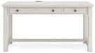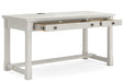 This home office desk is sure to impress when it’s time to study or work from home. With its antiqued white finish and wood grain texture, modern farmhouse-style workstations have never been so fashionable. A wide keyboard drawer and convenient USB charging bring function galore to your at-home office. Use this piece as a stand-alone work area, or pair it with the matching desk return (sold separately) to expand your workspace. All that’s missing is you.
