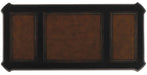 - Finish Description: Black finish over cherry veneers with reddish brown rub-through. Distressing includes rock and rasping.