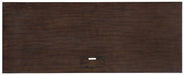 Add stylish work-from-home bandwidth to any space with the House Blend 60in Writing Desk with a sleek combination of the Dark Roast finish over Quartered Ash Veneers and silver metal trim. The bold silhouette is finished on all sides and features a power supply in the top for seamless electronics hook ups.
