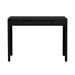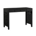The Boho inspired Trellis Lane accent desk will make your room both function and stylish. Crafted of solid mango in a Weathered Black finish with brown rub thru. Features artisan hand carved side panels, one wood trim drawer and wood knob hardware. The perfect size for small places from your living room to a bedroom. Add the accent chair and bookcase to complete your look.