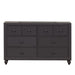Indulge in cottage design with the Cottage View 6 drawer dresser. Crafted by melamine and a rubberwood solid frame, this piece features a dark grey finish, kenlin drawer glides, bottom case dust proofing, solid wood picture frame moldings, laminate drawer interior, bluff cut top drawers, accented by wooden knob hardware and anchored by bun feet. This piece is offered in an alternate finish, and the melamine is scratch resistant, sure to make this piece last in any home.