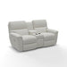 The Ava Power Reclining Loveseat with Headrest, Lumbar and Console is cool, comfy and handy. Flared arms frame tailored box-border backs and chaise seats with a clean, smooth design. Adjust head to toe and stow drinks and devices for max relaxation!