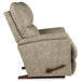 An updated silhouette, complete with slightly flared arms and a sleek tall back give Trouper a look that’s fresh and contemporary. It’s also one comfortable recliner. The sculpted bucket seat cradles you in softness while the padded split back provides superb head and lumbar support. Simply use the convenient handle on the outside arm to raise the legrest for reading, relaxing or watching TV. When you’re not reclining, it’s a relaxing rocker with a smooth, graceful motion.