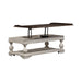 Take a walk-through time and find vintage treasures with the Abbey Road collection. Crafted of polar solids and birch veneers, finished in porcelain white with Churchill brown tops. Features a lift top cocktail great for working from home or dining in your front of the TV, castered for easy movability, end table offer one full extension drawer and one slide out drink tray with antique pewter knob pull. Updated traditional will bring your space a new level. Kit consists of one cocktail table and two end tables.