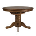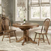 Reinvent your style with the Carolina Crossing three-piece round table set. Crafted of rubberwood solids, this set features a heavily distressed antique honey finish and consists of a pedestal table and two Windsor back side chairs. The pedestal table has a 15” butterfly leave allowing the user to expand the round top into an oval top and is anchored by a turned pedestal base flowing into splayed feet. The chairs feature saddle shaped seating for added comfort and turned splayed legs with nylon chair glides to protect your flooring. Carolina Crossing offers affordable solids in a perfect scale for smaller dining areas.