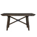 Gather the family around the Double Bridge gathering table set. Crafted of rubberwood solids and acacia veneers, this set consists of a gathering table base and top and features a dark chestnut finish with wire brushing, and two 12-inch leaves, one for each end of the table, to accommodate guests or a larger family, and an easy glide track system for added convenience. The Double Bridge Dining defines the rustic side of casual. The sleek design is optimal for any space.