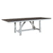 Live life beautifully with the Farmhouse optional seven-piece trestle table set. Crafted of rubberwood solids and veneers, this set features a two-tone whitestone finish with heavy distressing and weathered oak tops and consists of the trestle table, two Windsor back armchairs, and four Windsor back side chairs. The trestle table features a solid wood top with two removable 18” leaves with refectory ends. The Windsor chairs, known for their comfort, feature nylon chair glides to protect your flooring and has the same two-tone finish as the table.