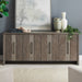 Turn the ordinary into the extraordinary with the Lafayette 4 door accent cabinet. Meticulously crafted using Rubberwood solids and Split Heart White Oak veneers, this piece features a Weathered Tobacco finish. The cabinet offers canted picture frame molding, adding a touch of sophistication to its design. With its mix of textures, this cabinet boasts a captivating aesthetic that complements any interior decor style. The four doors, supported by European soft-close hinges and magnetic door catches, open to reveal a spacious interior behind each set. Here, you'll find one large adjustable wood shelf behind each pair of doors, offering ample storage space for a variety of items. In addition to its storage capabilities, this accent cabinet is designed with wire management provisions, ensuring a clean and organized appearance, whether used as a TV stand or storage solution in the entryway. Elevate your space with the versatility and elegance of the Lafayette 4 door accent cabinet, a piece that seamlessly marries form and function to enhance any room in your home.