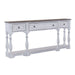 Elevate your space with the traditional Magnolia Manor 72-inch hall console table. Crafted of poplar solids with white oak and birch veneers this piece features an antique white finish with a weathered brown whitewash top, three full extension drawers and a bottom shelf for additional storage. This timeless console table will make a wonderful addition to your traditionally styled home.
