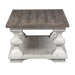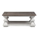 Elevate your space with the Spanish style Sedona cocktail table. Crafted of rubberwood solids and white oak veneers, this piece features a heavy distressed white finish and gravel top, appealing planked top with square peg accents, a planked bottom shelf for additional storage, casters for easy mobility, and is anchored by Spanish style square turned legs. Also available in an alternate finish, this gorgeous cocktail table will be a great addition to any traditional style space.