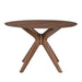 Gather the family around the Space Savers round pedestal table. Crafted of rubberwood solids and walnut veneers, this piece features a satin walnut finish, fixed top, and is anchored by a unique architectural style base. This table is sure to create a simplistic statement in any room.