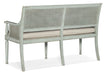 A fresh take on vintage design, the charming Charleston Bench is crafted of wood and accented by cane on the back and inside and outside arms. Featuring intricately-shaped legs, the piece is finished in Haint Blue, a soft color which can be found on the ceilings of porches and entryways, window shutters and doors in the American South, dating back more than 200 years from the Gullah folklore that held the color kept “haints” or spirits from entering homes and dwellings. The cushion is upholstered in the Oyster performance fabric for stain resistance and cleanability.