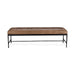 A contemporary design with rustic tones, the Madeline bench lends sleek style to any space. Horizontal channel stitching adds mid-century depth, while the iron base enhances industrial chic, making the Bench a perfect finishing touch for your space.