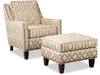 Choose your favorite nail finish and your perfect fabric on this handsome chair , and watch your vision come to life. With transitional styling and sleek lines, this chair has it all. Delicate nail head trim frames the outside of the arm and front rail, while the tall tapered legs give it a modern touch. It features a loose back pillow, and comfortable seat cushion to give you a perfect place to relax. Also available is the matching ottoman. Also available without nail head trim.