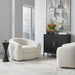 The Capra chair draws inspiration from old Hollywood glamour and the Art Deco movement with a contemporary twist. The curved silhouette maximizes style and comfort with luxe off white faux shearling and swivel base.