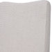 Gently sloped padded seat in a beige polyester blend fabric. Rests within a solid wood frame finished in rich walnut.