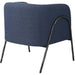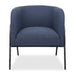 Inspired by Scandinavian designs, this barrel back style chair showcases elegant curved lines with a chiseled iron frame in a natural aged black iron finish. A regatta blue polyester fabric accents this modern look.