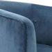 Make a dramatic statement with this barrel style swivel chair, covered in an ink blue polyester velvet with button tufted accents. Rests on a satin black wood base.
