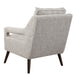 A nod to classic Scandinavian style, this open arm style chair is tailored in a woven linen blend fabric in natural stone hues with a button tufted back cushion and dark walnut finished wood legs.
