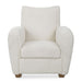 With its curved track arms and supportive back, this cozy accent chair is the perfect balance of comfort and style. Fully upholstered in a soft off white faux shearling and accented by walnut stained wooden feet.