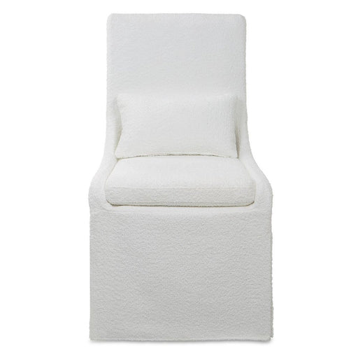 UttermostSimplistic in form, this sophisticated armless chair features a heavily textured polyester slipcover in crisp white with a plush cushion seat and k...