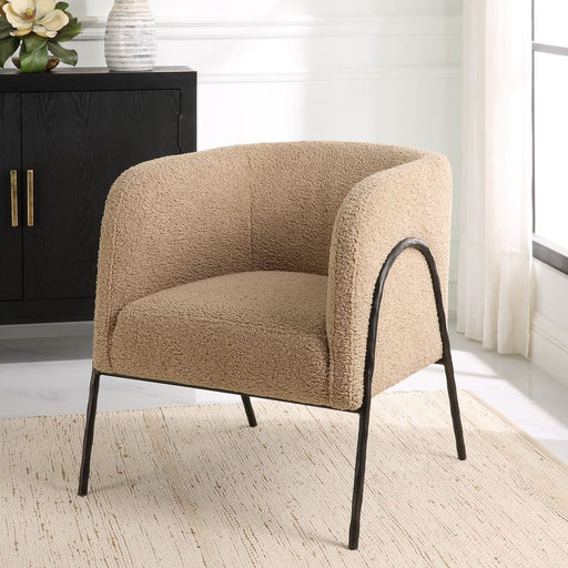 UttermostInspired by Scandinavian designs, this barrel back style chair showcases warm latte faux shearling nestled in a curved chiseled iron frame finished...