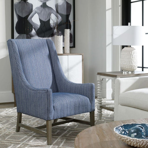 UttermostShowcasing a classic wingback style with a coastal feel, this accent chair features a blue and white organically striped fabric, resting on natural...