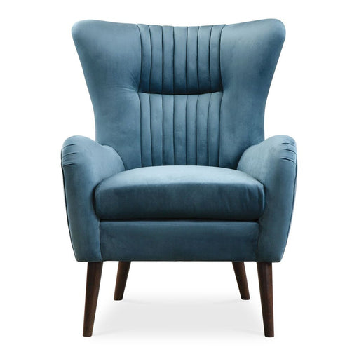 UttermostContemporary style can be found in this solidly constructed wing chair. Featuring a denim blue linen blend fabric accented with antique bronze nail...