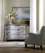 Dreamy in a soft blue finish that looks like it has aged through the decades, the Chatelet Chest will become the most romantic piece of furniture in your home. Design details like an acanthus leaf border on the base and chic bun feet add to the allure. Three drawers with a faux lock on the top drawer. Crafted of Poplar and Hardwood Solids.