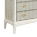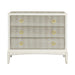 The Kiara Hall Chest exudes a vintage charm with its antique cream wood frame, providing a classic and elegant foundation. The body and drawers of the chest are enhanced by an antique mirrored finish, which adds a touch of glamour and reflects light to brighten any space. The mirrored finish is tastefully aged, giving the piece an heirloom quality. Round, golden drawer pulls contrast beautifully against the muted tones of the chest, offering a luxurious touch to this functional storage piece. This hall chest marries the practicality of storage with the refined aesthetics of traditional furniture design.