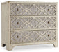 Timeless and romantic, this elegant chest is purely pretty with its fretwork front combining a creamy Pearl Essence finish with Antique Mirror and a soft silvery gold accent. Three drawers; the bottom drawer is cedar-lined.
