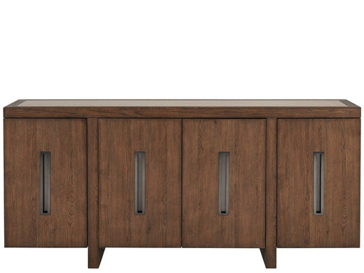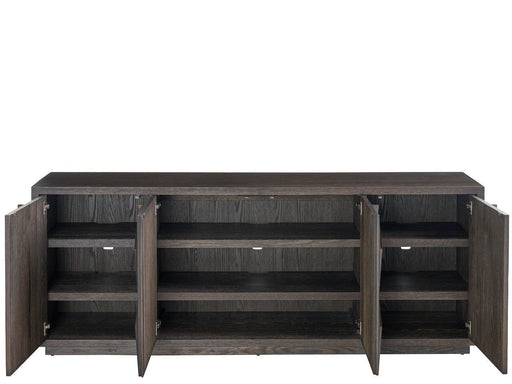 Universal FurnitureThe Veda Credenza, in a bold Medium Brown Oak finish, commands attention with its four doors and interior adjustable shelving, designed for versati...