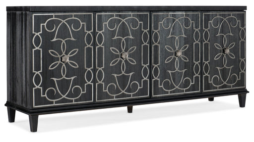 Hooker FurnishingsWith a Moroccan flair and an elegant black and silver color scheme, the Madeline Credenza is crafted of Pine Veneers with a black wood finish, text...