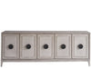 The Coalesce Entertainment Credenza is a confluence of style and utility, boasting generous interior storage complete with four adjustable shelves. Clad in a serene Rolling Fog finish and accented with faux linen texture doors, the piece is defined by circular, slightly oversized metal pulls that lend a trendy, dynamic flourish to this sophisticated organizer.