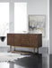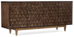 Warm and welcoming and crafted of Walnut Veneers with a timeless marquetry pattern, the Alpine Four-Door Credenza has 4 doors with one adjustable shelf behind each pair of doors. Media-ready, the credenza has a ventilated back panel.