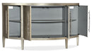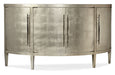Set a champagne-and-roses mood for everyday spaces with the alluring Amberly Credenza, crafted of Maple Veneers wrapped in linen and covered with silver leaf in a champagne finish. The interior is finished in a tasteful taupe-gray paint, and a textured metal bar pull in a champaign finish adds a final classy touch. Four doors with one adjustable shelf behind the pair of center doors and one adjustable shelf behind each right and left side door.