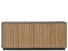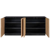 The Noir Credenza is a grand statement piece, with four intricately carved wooden doors nestled within a striking metal frame. It artfully combines whimsical touches with mid-century influences, presenting a unique interpretation of modern design that adds character and sophistication to any setting.