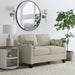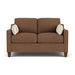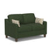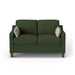 Subtle Sophistication Fine details create a simple, sophisticated aesthetic with the Drew loveseat. Gently sloping arms are accentuated by a distinctive welt trim, adding a level of refinement to Drew’s transitional style. Exceptional comfort is a given with generous seating space supported by plush, boxed seat cushions and soft back cushions that are also removable and reversible for easy cleaning. Transitional style with a sloped arm Square tapered legs in a rich Florentine finish Removable and reversible seat and back cushions allow you to flip and rotate them for even wear Includes two accent pillows in your choice of fabric to match your personal style The patented Blue Steel Spring in the seat provides unmatched support and lasting comfort Sustainably sourced wood frame delivers exceptional durability Upholstered in your choice of fabric, including those with performance and sustainability characteristics Handcrafted in North America Model Number: 5725-20 Dimensions 38H x 59W x 36L