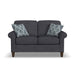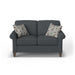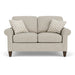 Deep seating with refined style Lean back and look sophisticated in this Westside classic. Rolled arms and tapered wooden legs elevate an angled profile so you can sit back and relax elegantly. Soft boxed seat and back cushions paired with quality construction provide years of comfortable seating for you and your family. Careful tailoring of all fabrics reflects matching of all elements except outside back panels and welts. Also available in leather. Model Number: 5979-20 Dimensions 37H x 59W x 37L