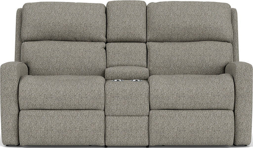 FlexsteelContemporary-styled comfort invites all-day lounging with the Catalina reclining loveseat with console. Easily recline back and unwind in either se...