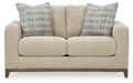 Serene style with a modern sensibility. Delight in the cozy, versatile embrace of this loveseat. It takes an on-trend approach to irresistible texture and natural beauty, showcasing soft upholstery accented with a transitional wood trim. As refined as it is laid back, the loveseat also keeps comfort a priority with plush, thick seat cushions.